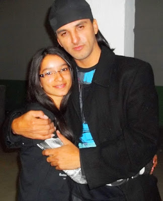 César Di e a Professora Vânia Moura, que trabalhou em sala de aula com os alunos da Escola Natércia Creemm o Projeto Cantando Idéias: